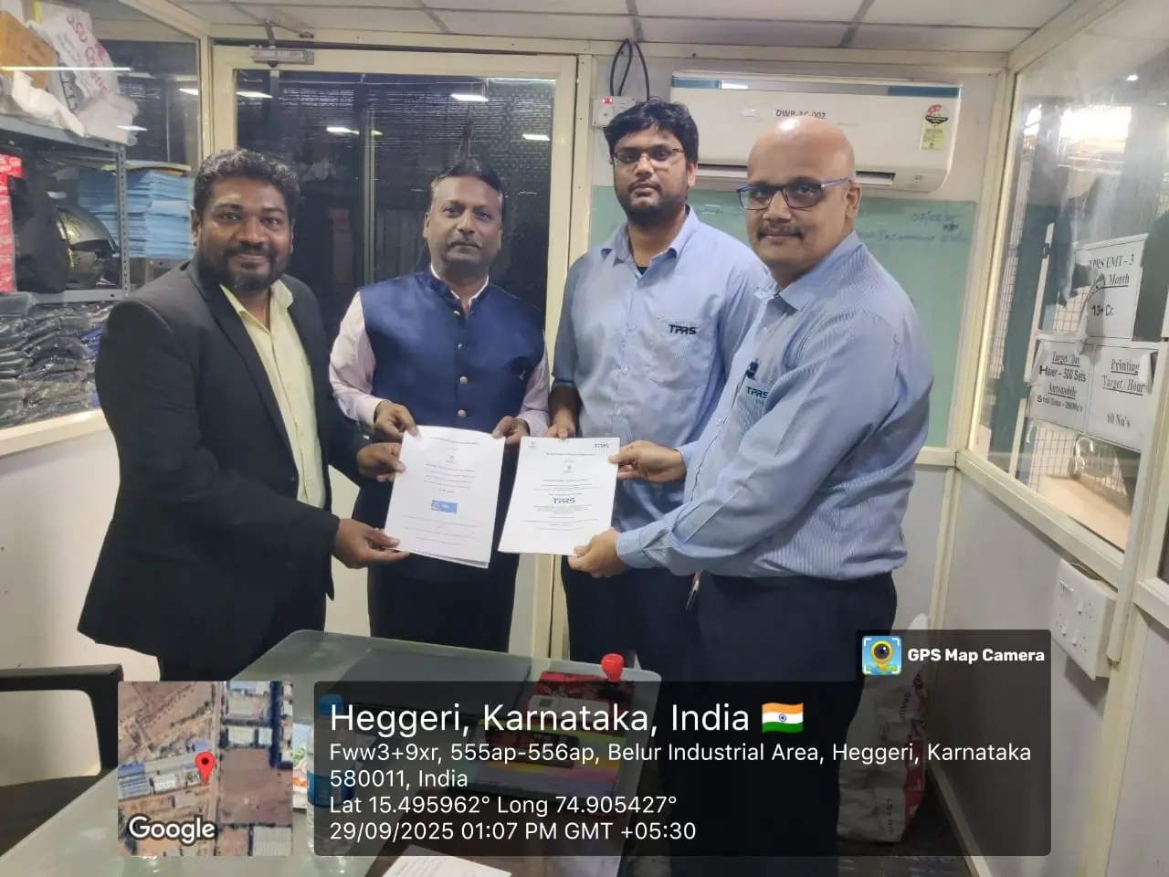We visited the TPRS Glass Plant at Dharwad and met Mr. Nagaraj Kamath, Head – Administration, and Mr. Bharaneetharan, HR-Admin. During the visit, we interacted with them and toured the plant under the guidance of the Technical – Head, who clearly explained all the processes followed at the facility. The visit provided valuable insights into industrial operations and best practices. Following the interaction, we signed an MoU to formalize collaboration between the industry and our institution, which will open avenues for internships, industrial visits, Placements and other academic–industry initiatives for our students.